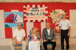 9月16日に敬老の日にちなみ、由布市長が来園され由布市最高齢のお祝いを行いました。