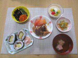 本日は、ご利用者に人気の巻き寿司(手作り)です。